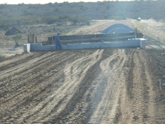 em seguida, o aterro final e aplicação do asfalto da rodovia que liga a BR. 104