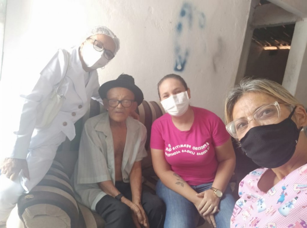 As fotos foram autorizadas pelas famílias dos 10 primeiros idosos acamados contemplados com a vacina.
