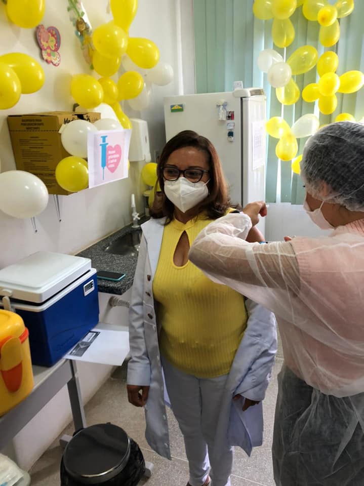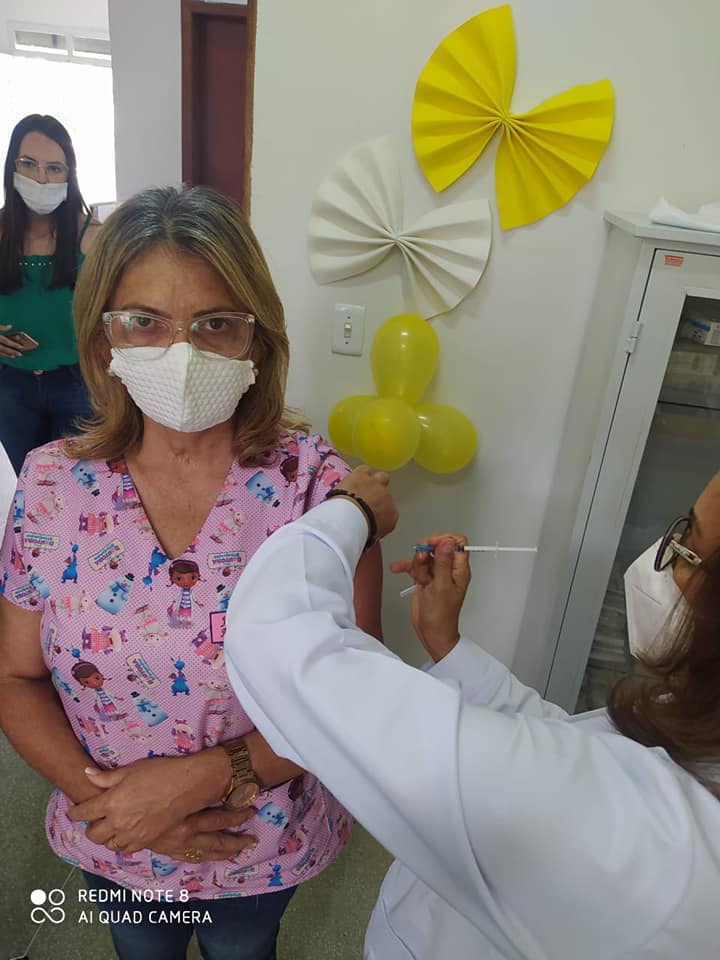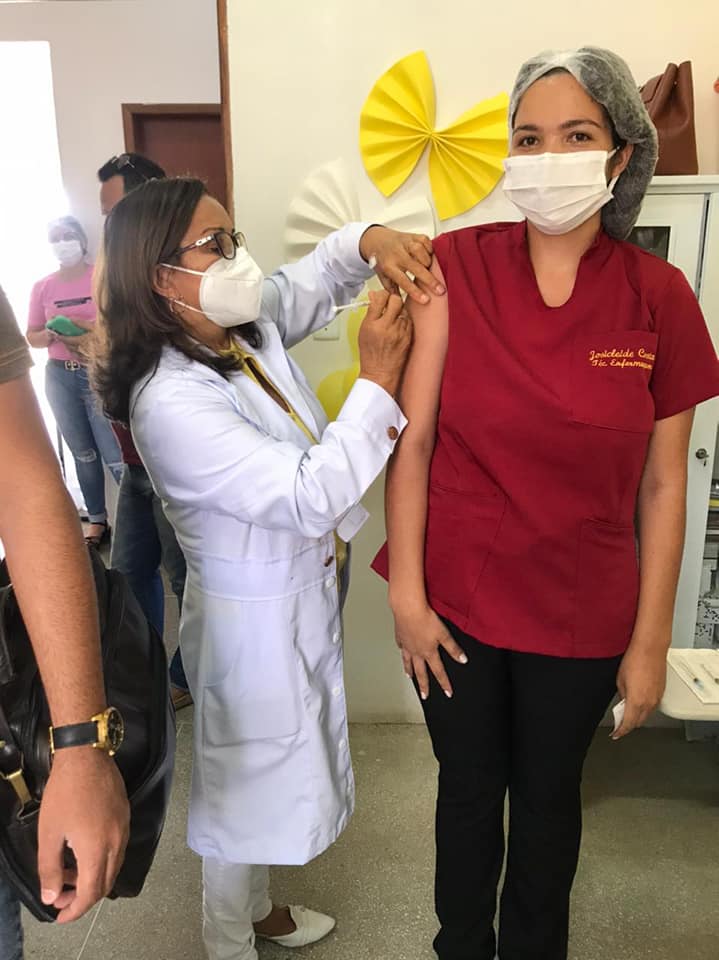A primeira pessoa a ser vacinada no município de Sossego foi a Técnica de Enfermagem Maria Madalena dos Santos Monteiro de 60 anos, que há muitos anos trabalha como vacinadora no município.