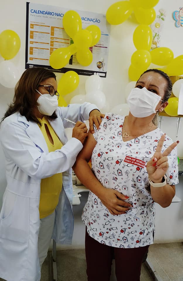 Foram vacinados uma parte das equipes da zona Urbana e da zona rural, seguindo assim o cronograma de vacinação.